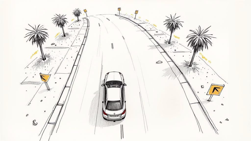 Using this rule is simple. First, pick a fixed object ahead, like a sign or a bridge. When the car in front passes it, start counting: “one-one-thousand, two-one-thousand, three-one-thousand.” If you pass the object before you finish counting, you are too close. You should slow down to create a bigger gap. This method works well because it adjusts for your speed.
