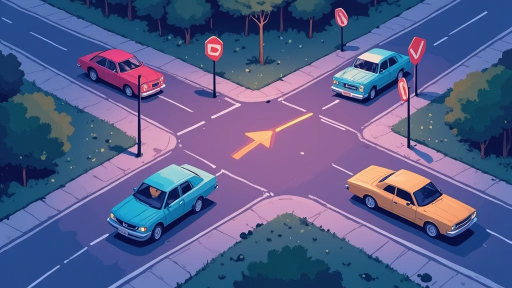 The standard four-way stop rules give us a clear pecking order for cars, but let’s be honest—intersections are rarely that simple. Out in the real world, you’re not just dealing with other drivers. You’re sharing the road with people on foot, on bikes, and even special vehicles that play by a different set of rules.