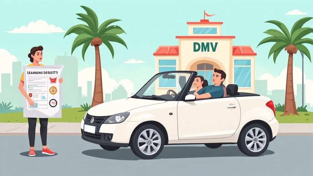 This table covers the essentials that can get you sent home if they aren’t in order. For a deeper dive, our guide on basic Florida vehicle maintenance has more tips to get your car test-ready. Spending five minutes on this check can save you a world of trouble.