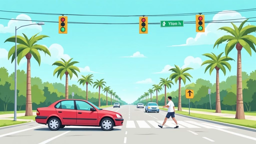 You’d be surprised how often simple, fundamental errors are what trip people up on the Florida driving test. The infamous “rolling stop” is a classic example—if your car doesn’t come to a full and complete stop, it’s a major red flag for the examiner.