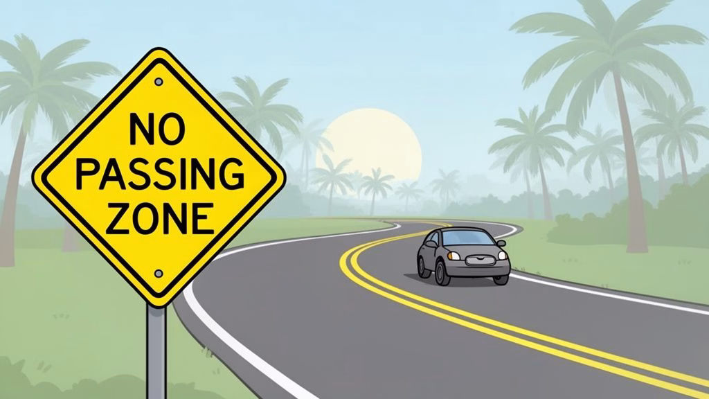 Florida roads speak a language all their own through a combination of signs and pavement markings. Learning to read them on the fly isn't just a good idea—it's a critical part of being a safe, responsible driver. The "no passing zone" is a perfect example of how these elements team up to give you a clear, unmissable instruction.