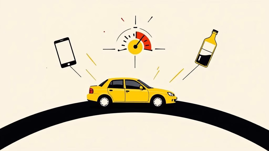 While you might think of high-speed chases or drunk driving, the truth is a bit more mundane. Day in and day out, the single biggest culprit behind car crashes is distracted driving. It’s the sheer number of people texting, fiddling with the GPS, or just zoning out that makes it the leading factor in collisions. That split-second of inattention is all it takes to turn a normal commute into a life-altering event.