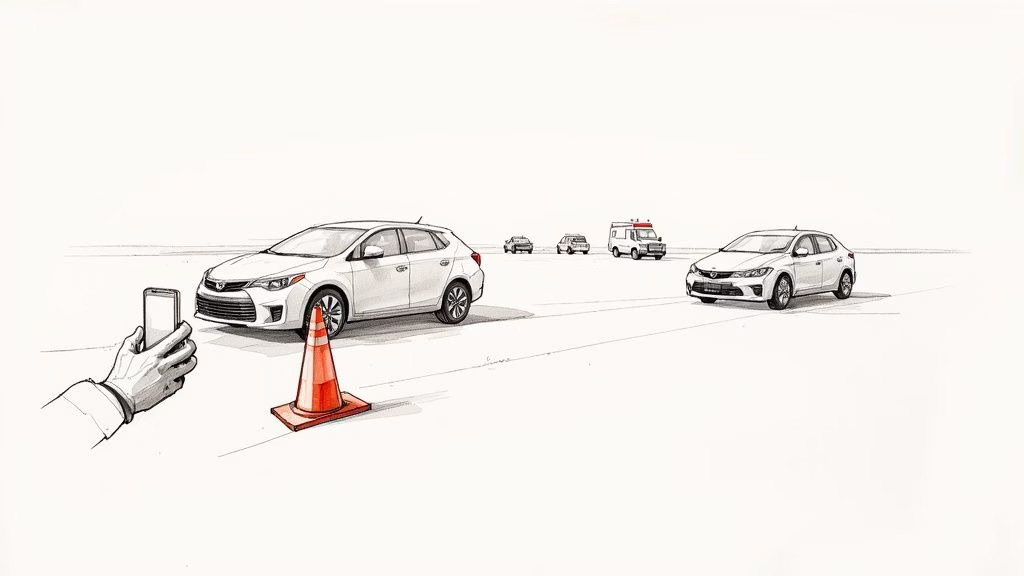 If you can still drive your car, move it to the side of the road. This helps stop another collision. As soon as you are stopped, turn on your hazard lights. This is a very important step. It tells other drivers to be careful. Next, you must call 911. You should do this even for a small fender-bender. A police officer will write an official report. This report is very useful when you talk to your insurance company. The U.S. National Highway Traffic Safety Administration (NHTSA) provides data on traffic safety. Their reports show why getting official help is so important after any traffic incident. For example, in Texas, state law requires drivers to report any collision that results in injury, death, or property damage of $1,000 or more. The official Texas Driver Handbook outlines these rules clearly. This picture helps you remember what to do. Your safety comes first, and then you can gather information. To help you remember these key steps, here is a simple list.